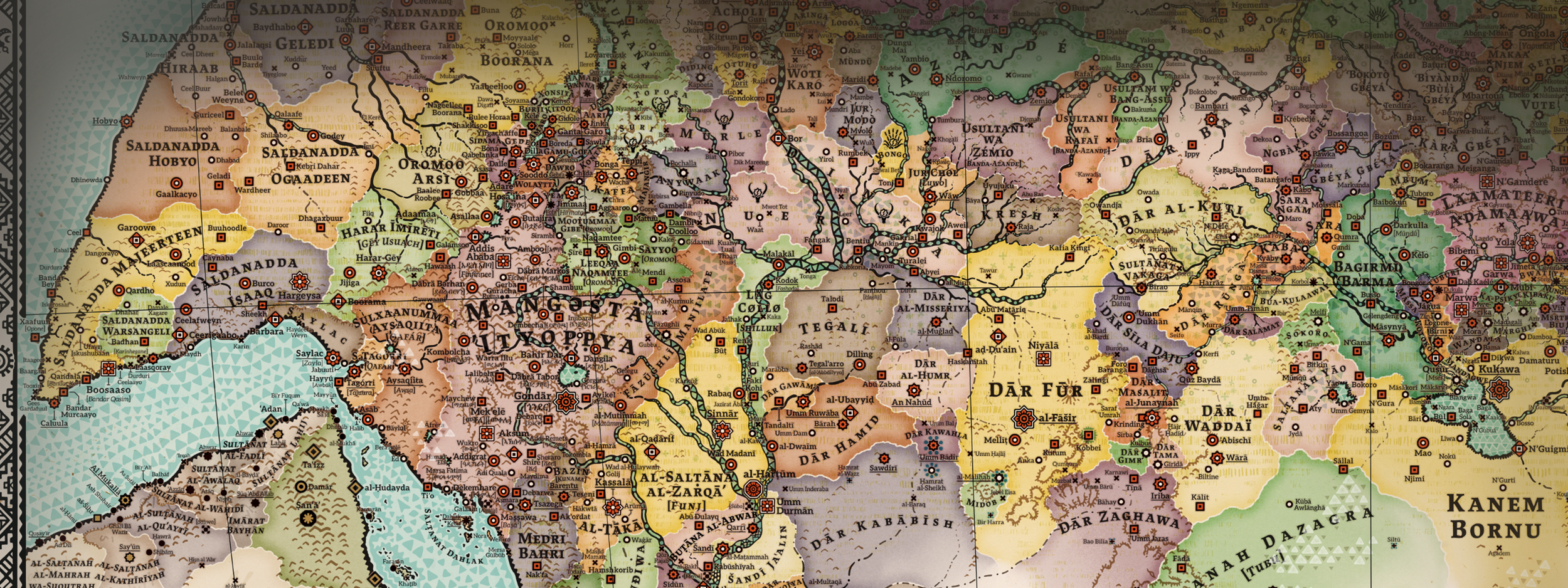 Original Iconography: Every settlement is represented by unique icons inspired by African sculpture and architecture—replacing generic colonial map markers.